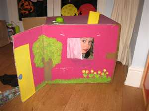 Just cut the flaps on one side, the cut a little door and window. Next let you kids color their playhouse and fill it with pillows, toys, books and their favorite blanket. Will give your child several hours of entertainment while improving their imagination play.