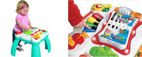The musical table has many activities and sounds, this makes it less annoying than toys that only makes one sound. This table is made from sturdy hard plastic and it can take the standard abuse toddlers dish out, to their toys.