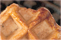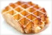 The Liège or Liègeois waffle is a golden-yellow, thick, more dense in texture, coated with a burned sugar or caramelized sugar coating on the outside, finger lickin' perfect waffle... that can stand on its own. These are freshly made and sold by street vendors and supermarkets everywhere in Belgium and eaten, 'no fuss-no guff' by hand on the go. These usually come in plain, vanilla or cinnamon flavored. The caramelized sugar coating of the authentic liege waffle comes from sugar chunks being added to the batter better said dough and the special Belgium waffle makers. These unique waffle irons were only available in Belgium but are necessary for the waffles to get their signature crunchy-golden outside and fluffy inside.