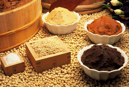 5. Miso - Best known for use in miso soup, miso is typically paste made from soybeans and/or barley, fermenting rice, salt and a kind of yeast mold. There are three main kinds of miso: white miso, red miso and a blend of white and red miso, the difference between them consisting mainly of their fermentation time. Red miso is kept fermented for a longer period of time, which causes it to have a more salty taste and a reddish color. White miso is milder, sweeter and is a light yellow color. Miso is commonly used in soup, noodle dishes, marinades, and braised meat and vegetables.