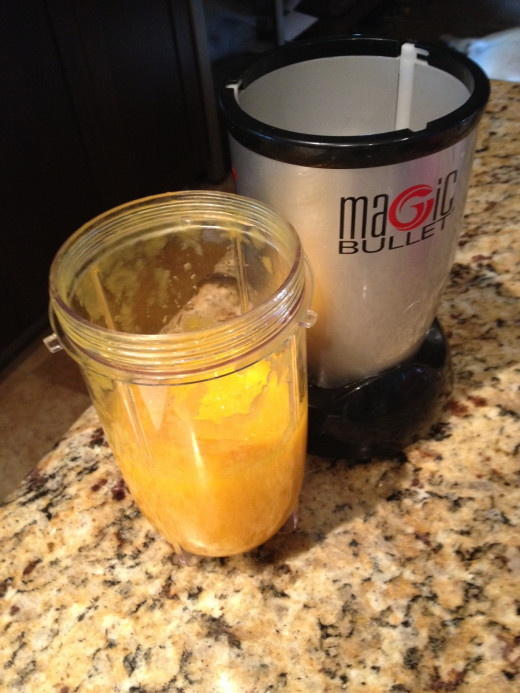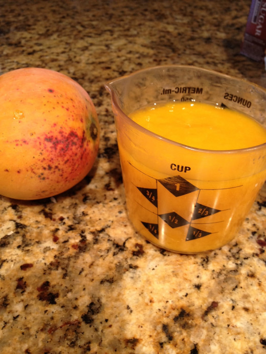 - Put the mango squares into a blender and blend until it is a smooth puree.
