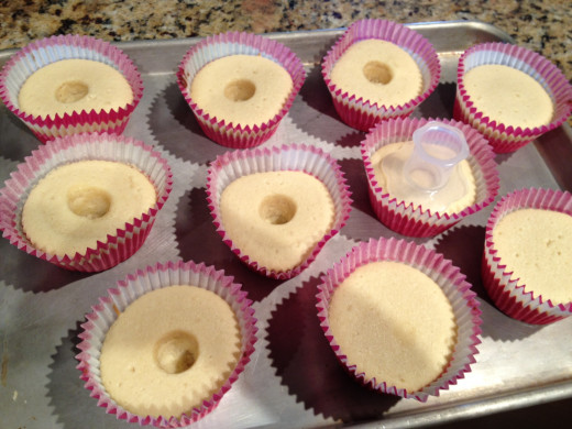 - Use a cookie cutter (or a baker's tool like the one in the picture to the right) to scoop out the center of the cupcakes.