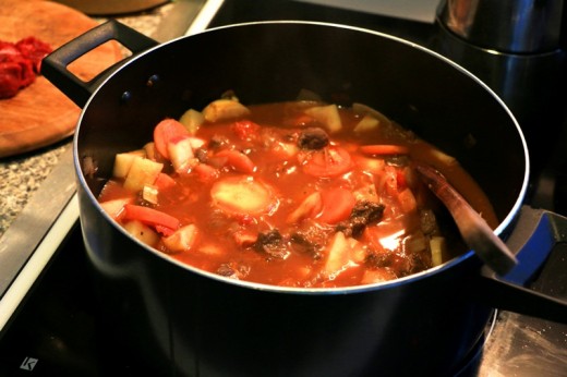 - Re-heat the stew in the pot on the stove, stirring continuously and adding liquid if needed