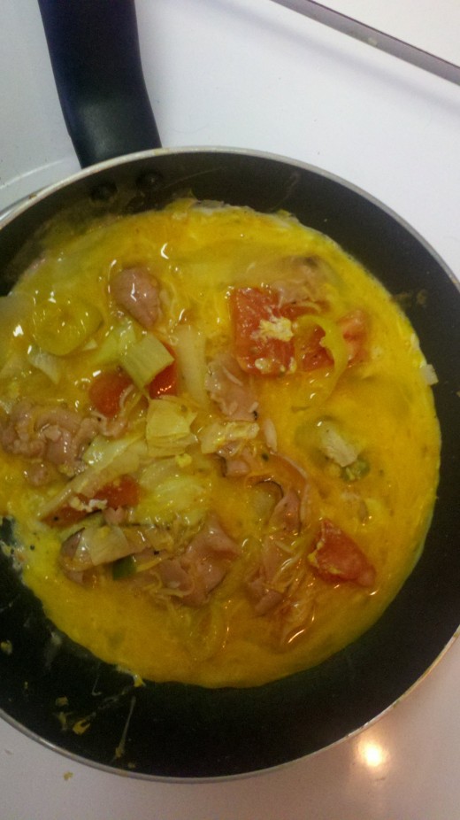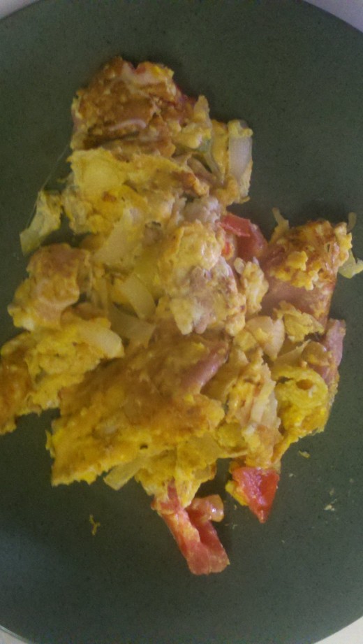 This is a quick little omelet or scramble. It's fairly gourmet and very hearty. The Prep is fairly easy and the cooking difficulty depends on your skill with a pan. I struggle with omelets, so I tend to treat this dish as a hybrid.