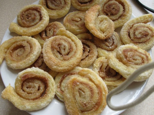 The best part of this recipe is that you don't have to be a French pastry chef to make these. You just need to buy puff pastry in the frozen section of your supermarket. Puff Pastry comes in packages of 2 sheets. Each sheet yields 18 cookies. But at $5.49 a box you get 3 dozen cookies out of it and that is the primary ingredient.