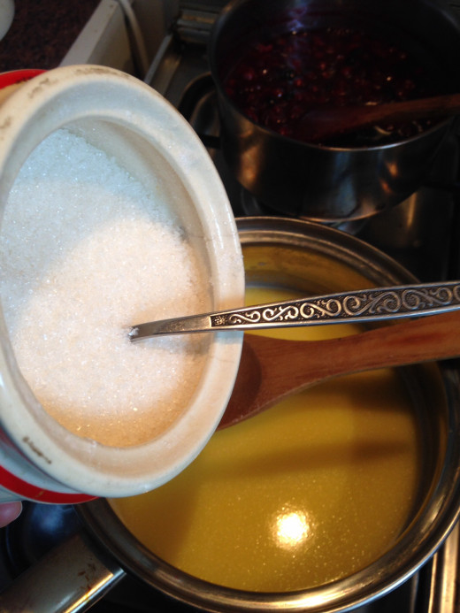 - As the sugar is dissolving, add the orange peel and essences and mix well. Oh yes, this recipe will get your hand a lot stronger.