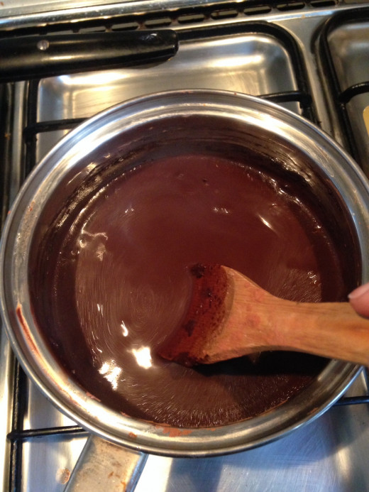 - Depending on the consistency you are looking for you might not need to add the whole amount of coca. Once the ganache starts getting thicker, it will start sticking to the bottom of the pot, if you feel the wooden spoon get slippery on the bottom of the pot, that means the ganache starts sticking to the bottom. Take the pot off the heat and keep stirring, once you can feel again the bottom of the pot, pot it again over the heat.