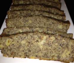 While an average banana bread has around 13grams of saturated fat this version contains only 1.5g of saturated fat! I found this recipe in a healthy food magazine a couple of years ago. I have lost the original copy so I am sorry but I can not tell you where exactly. I have made it so often I can do it without the recipe these days.