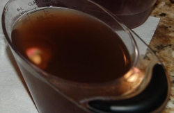 Once completely cool, spoon stock into freezer containers. I usually use 1-cup and 1-quart plastic containers. The smaller containers are great to use when making rice, and the larger ones are a great base for soups. I started out using freezer bags which take up much less space in freezer. I sometimes will still use them, but since I am not adept at filling them without pouring fresh stock all over my kitchen counter and floor, only use this technique when my son, Bobby, is on hand to help me out. Whichever method you use, be sure to mark your container with type of stock and date made.
