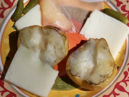 We are going to grill the pears, but not the cheese. Neither is a hard cheese, though they are not very soft either. But they wouldn't do well on the grill.