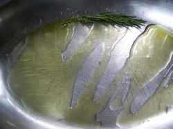 Pour some in the pan you are going to use to carry the eggplant slices to the grill.