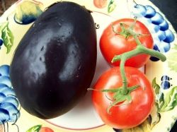 But the star, right up there on the marquee, is the eggplant outshining even cousin tomato on this occasion. Don't worry, the rivalry is friendly -- they take turns getting top billing.