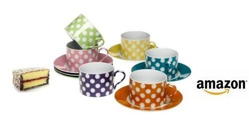 Serve your lamingtons with a good hot cup of your favourite in these pretty polka-dot cups and saucers from Yedi Houseware. The Set of 6 Cups & Saucers in fine porcelain comes in its own Satined-lined hatbox with elegant and pretty artwork