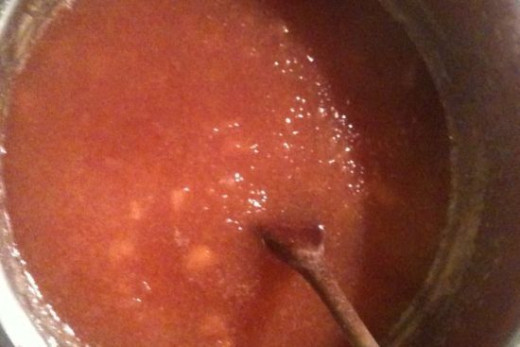 Bring the pulp and sugar gradually to simmering point, stirring to dissolve the sugar and let it simmer, lowest setting for about an hour. You have to stir frequently to stop it sticking and burning.