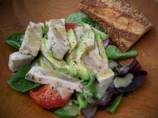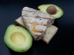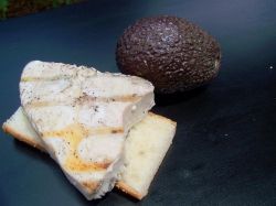 The idea for this came at the spur of the moment, but if you really want to follow us down this rabbit hole, it is best to plan ahead -- because one can never count on serendipity. You could grill the tuna steak especially for this meeting with avocado, but more likely you will do such grilling for some other meal (see Grilled Tuna) and then use the leftovers, if you are fortunate enough to have leftovers, a couple of days later. Avocados are notoriously under-ripe when you buy them at the supermarket, so you are going to have to let them ripen at home, maybe for as long as a week, before attempting to introduce one to a tuna. Avocados put a damper on the idea of just going out to buy them on the spur of the moment -- you have to plan ahead with avocados.