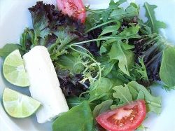 Note the pieces of lime, the wedges. We are going to squeeze these all over the salad.