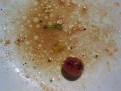 Here it is up close, this combination of oil, lime juice and EVOO, after the salad has been eaten. We are going to fetch a nice piece of a sourdough baguette and sop this up! We are not going to let any of it go to waste.