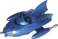 This model was released in 2005 and is the 2000 Film version of the Batsubmersible in 1.43 scale diecast. The Batsubmersible lets the Caped Crusader persue the villains underwater. This vehicle has spring-released side torpedo launchers and front weaponry which fire when the dome is pressed down.