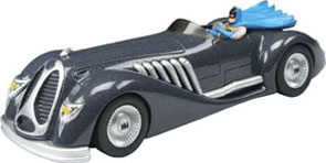 This model was released in 2005 and is the 1940's Comic book version of the Batmobile in 1.43 scale diecast. This Batmobile Roadster is one of the most popular vehicles in comics history and also comes in a Special box. The model features a Batman figure in the driving seat, the bonnet opens to reveal the engine and the trunk opens so you can see the detailed Batman weapons and gadgets.