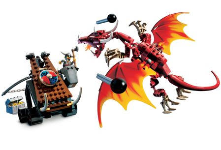 The Viking Double Catapult versus the Armored Ofnir Dragon Set was released in 2005 and featured a Double Catapult, an armoured Dragon along with 3 minifigures of Viking Warriors with large swords, a spear and a shield each. This set contains 505 pieces.