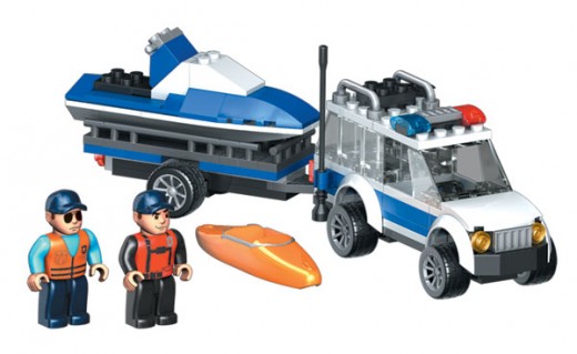 The Mega Bloks Blok Squad Beach Patrol Set is due to be released in 2011 and will feature a Police Cruiser SUV, a Police Personal Water Craft or Jetski and a Police Canoe, along with a 2 Police Officer minifigures. This set will contain 183 pieces.