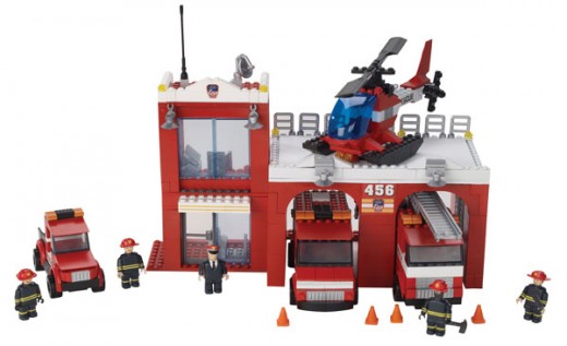The Mega Bloks Blok Squad Fire Patrol Station Set was released in 2010 and features a fire station and four fire vehicles including a helicopter, a fire engine, a fire truck and a jeep, along with 5 firemen minifigures. This set contains 956 pieces.