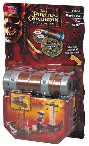 This Spyglass is an iconic movie prop that can be turned into a portable, reusable storage device. Inside are a collection of building blocks that let you create your own scene from Pirates of the Caribbean: At Worlds End. Also included is a fully articulated and highly detailed figure of Captain Barbossa in Singapore vessel with hiding panel.