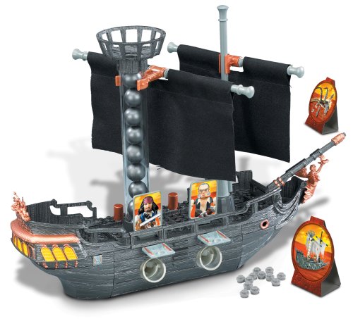 The Black Pearl defends itself with unmatched speed and a crafty cannonball barrage attack. This model has real fabric sails, a cannonball arsenal, and highly detailed parts and it takes no prisoners on the ocean of danger. This fully buildable battleship has electronic sounds and launching cannonballs that you feed into the ship masts and fire through launching cannon ports. Hit the panels on the enemy ship to activate battle sounds and to disable the enemy cannons. Create the Black Pearl and fight for control of the seas. There is also a hidden webcode inside the toy to unlock information online