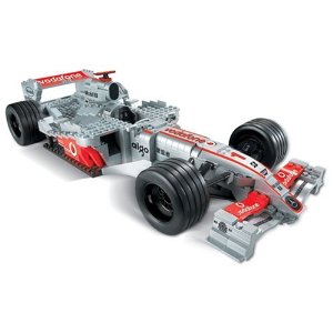 It's up to your pit crew to help Fernando Alonso return to the track in record time to win the Grand Prix. Construct the pit area and the replica of the Vodafone Mclaren Mercedes F1 car. Sit Fernando Alonso in car and ride to the top of podium. It also comes in collectible tin packaging for storage and display.