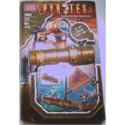 The Coastal Patrol set was released in 2005 and features a spyglass that opens up into a canoe as well as weapons, flags, sails and treasure chests. Also included are 2 Mega Blok men both members of The Sea Marauders. This set contains 30 pieces.