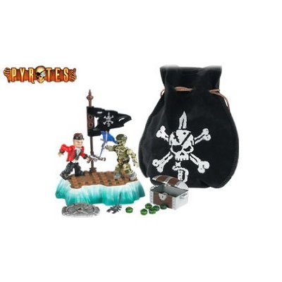 Guard your treasure with care as the Pyrates are fighting a bitter, sandy duel over a treasure chest.The set comes with a resealable skull and crossbones fabric pirate pouch to store the pieces.