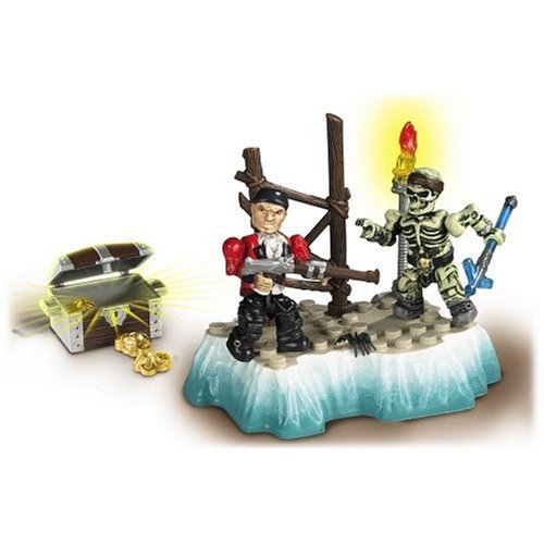 The Buried Bounty set was released in 2005 and features an interactive treasure chest, a musket, a harpoon, treasure hunting tools and a treasure coin. Also included are 2 Mega Blok men, a Privateer and a member of The Skeleton Crew. This set contains 14 pieces.