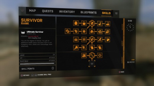 The developers of the game made Dying Light much more addictive by adding a cool skill tree structure which adds more awesomeness to the play style. The skill tree is divided into three categories such as survivor, agility and power. The player gains skill points by doing parkour, completing missions and killing zombies.