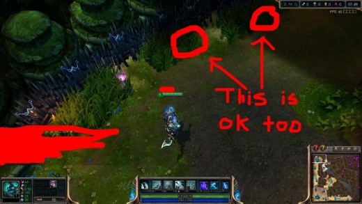 Early game: As for Irelia, her early game is everything. DO NOT push the lane because Irelia does not have any escape abilities. When you recall, If you have 875 gold or more, then purchase pickaxe first. If lower than 875, then buy doran’s blade. If you have corrupting potion, doran’s blade and pickaxe, you can inflict much damage to your opponent. Also, put a pink ward at the places shown below. Usually the enemy does not notice it.