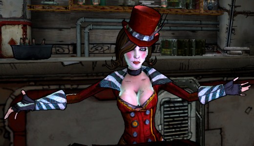 #6, Mad Moxxi. Mad Moxxi is the curvaceous and dangerous club owner on Pandora, even had a slaughter dome once. Moxxi is a club owner and rather seductive with how she acts and talks. In Borderlands 2 she will give missions and even sometimes a weapon or two, advice as well. She is a bit of an open card, she is bisexual and has had an assortment of husbands and things she calls "Toys" which doesn't sound to pleasant. Moxxi in her early days was a dangerous fighter and though now she be but a humble bar keep she still has quite the dangerous string, even threatening to kill a guy or two. Moxxi was even the main squeeze of Handsome Jack the main antagonist of the second Borderlands game, for a time that is until she was dumped for someone else.