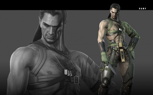 #5, Vamp. Vamp is a enemy in Metal Gear and one of the cooler and more dangerous beings, so much that he can take fatal injuries and still survive. Vamp is an ex-member of Deadcell, an anti terrorist organization. When Vamp was younger his family was killed in a church bombing, he was pinned under a crucifix and survived hunger for two days by feeding on the blood of his family, which gave him a taste for human blood. The Romanian weirdo. Vamp is able to run across water, stand on vertical walls and is a master of knives and close quarters combat. The man is near immortal thanks to the nanomachines that were inserted into his body, this bisexual blood lusting creep is a menacing threat but not bad on the eyes.