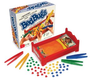 Bed Bugs was a 1985 game. It was a motorised game which would be full of little plastic bed bugs. The idea of the game was to pick up as many bed bugs you could using your plastic coloured tongs, while the bed bugs are shaking and jumping all over the bed. This was a fun game for the whole family.