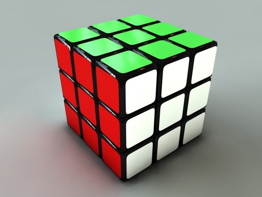 Put simply, the Rubik's cube is a six sided puzzle game. The larger cube is made up of 26 smaller cubes (there is no cube in the center). It's dimensions are 3x3x3, so it appears that there are 9 smaller cubes on each face of the larger cube. Each side of the cube is a different color---traditionally white, yellow, blue, red, orange and green are used---but nowadays there are a multitude of variants on the original color scheme. Nevertheless, each of the six sides is always given a unique color, logo, or design.
