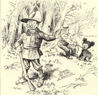 It was in November of 1902 that then President Theodore Rossevelt took a presidential trip to the state of Mississippi in order to negotiate a on going border dispute between Mississippi and Louisiania. Roosevelt was an avid outdoorsman so while on his trip he took a break from his official duties to go on a Black Bear hunting trip.