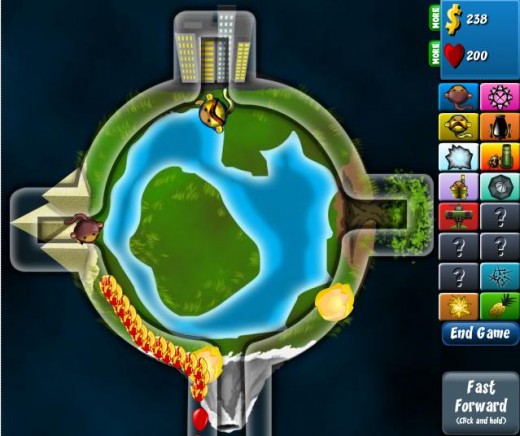 It's a Tower Defense game in which you have to use monkeys, the monkey naval and air force, super hero monkeys, wizard monkeys and so on to burst balloons. All of this beeing backed up by your banana plantations - they give a boost to your economy.