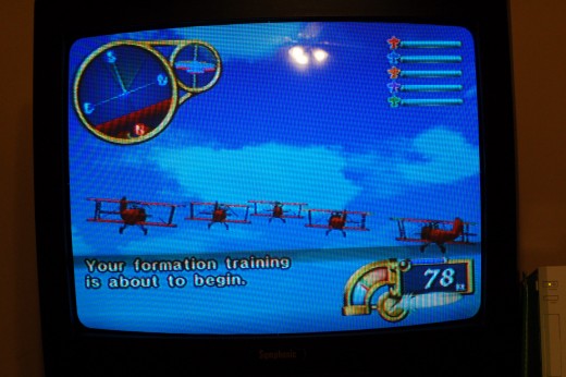 In the game you control a biplane using the Wiimote. It does uses the motion sensor capabilities of the Wiimote nicely, but the game play just is not all that interesting for me. It is however a unique plane game with it not being a fighter plane game like almost all other plane games are. This makes it a decent game for kids, although the controls get kind of frustrating at points.