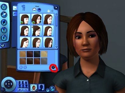 This is also how you get the funky hair colors, because the color wheel allows you to choose any color of the rainbow. If you want your sim to have bright green hair, you can do it using this tab.