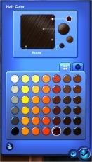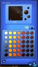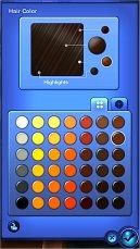 For now I want you to note the upper part of the panel shown at right. You see a large square block that has your sim's hair color displayed within it, and then to the right of that, four circles of varying sizes. Those circles, in order, are roots, highlights, base and tips.