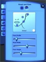 Here you can see that you have several different areas of the face that you can modify. Right now "global" is selected. You can also modify the ears, the cheeks, the jaw and the chin.