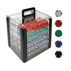 Each player buys in for a set amount, and gets a starting stack of chips worth 2,500. Each starting stack includes: 8 green chips, 8 black chips and 3 purple chips.