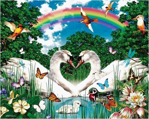 Peace and tranquility radiate from this symbolic image of good fortune, fidelity and family. Artist - Malcolm Watson: Item #508: 1000 piece jigsaw puzzle: Finished size 24" X 30"
