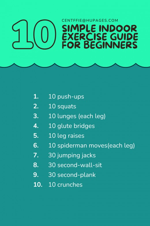 Give no more excuses. Keep fit without spending by doing these easy, safe exercises. Start with these 10 indoor exercises and with time you will master other variations.