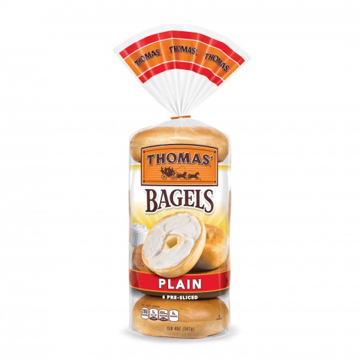 Whole grain, wheat or plain bagels are great for adding additional carbohydrates to your daily diet. Of course, whole grain bagels are the healthiest option out of the three. Each plain individual bagel usually has about 50 grams of carbohydrates, 300 calories, 5 grams of fat, 400 milligrams of sodium, 9 grams of protein and 5 grams of sugar. Thomas' six-count plain bagels, which is sold at a price of $2.99, is a great product at Wal-Mart. This is a great pre-workout and post-workout snack. For additional calories and fat for muscle mass, feel free to add cream cheese, peanut butter or regular butter on both halves of the bagel after toasting them in a toaster.