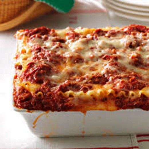 Lasagna is my favorite food, so I'm probably a bit biased on this one. Lasagna is high in carbohydrates, protein, calories and fat. Contrary to what some individuals may believe, you can still get a lot of protein with lasagna without adding in excessive meat sauce. In one square lasagna slice (123 grams), there is usually about 170 calories, 9 grams of total fat, 25 milligrams of cholesterol, 470 milligrams of sodium, 250 milligrams of potassium, 3 grams of dietary fiber, 3 grams of sugar and about 10 grams of protein. Despite no mention of fruits and vegetables in this article, be sure to consume multiple servings of both each day. Carrots and broccoli can be added to pasta dishes for additional fiber and vitamins and minerals.