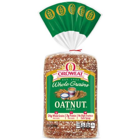 Whole grain oatnut bread is great to have with breakfast meals, trail mix, pasta and served as bread for sandwiches for lunch. Per one slice of the Oroweat Premium Whole Grain Oatnut Bread, there is 110 calories, 2 grams of total fat, 130 milligrams of sodium, 19 grams of total carbohydrates, 2 grams of dietary fiber, 3 grams of sugar and 4 grams of protein. There are also 13 grams of whole grains per serving as well. The types of nuts used in oatnut bread are hazelnuts, sunflower seeds, walnuts and almonds. This product also contains soy and whey (milk).